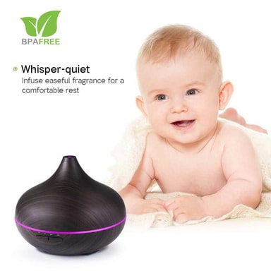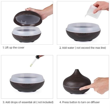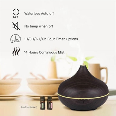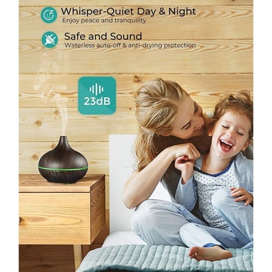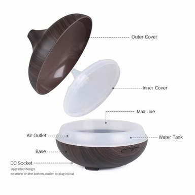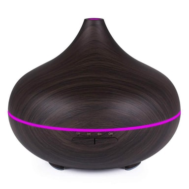 Täydellinen yksityiskohta kotiisi tai toimistoosi: Tyylikäs, puukuvioinen ilmankostutin, joka sopii täydellisesti aromaterapiaan ja zen-henkiseen rentoutumiseen.