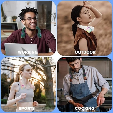 【Kädet vapaana -mukavuus】Suunniteltu roikkumaan mukavasti kaulassasi, jolloin voit nauttia viileästä ilmasta ja pitää kätesi vapaina muihin aktiviteetteihin.
