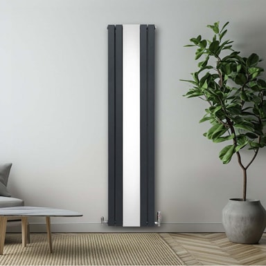 Tuo kotiisi lämpöä huippuluokan litteällä, antrasiitinharmaalla pystysuoralla jäähdyttimellämme, jossa on tyylikäs keskipeili – täydellinen sekoitus ajatonta eleganssia ja modernia tehokkuutta.