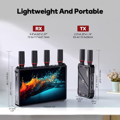 Tämä tuote on langaton kannettava 7"" näyttö HDMI-lähettimellä ja -vastaanottimella, joka tarjoaa vakaan videonsiirron jopa 400 metriin asti. Tukee 4K HDMI-tuloa ja 1080p-lähtöä, erittäin matalaa viivettä ja laajaa yhteensopivuutta – ihanteellinen kotikäyttöön, esityksiin ja ulkotapahtumiin.
