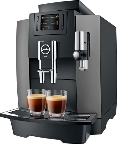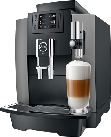 1450 W teho, 3 litran tilavuus, Pulse Extraction Process ja automaattinen maitotoiminto tekevät Jura WE 8 -kahvikoneesta erinomaisen laitteen pienyrityksille ja pienille palveluntarjoajille.