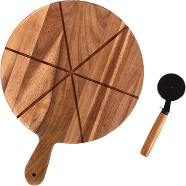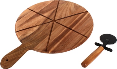 Home-pizzasetti sisältää pyöreän akaasiapuulevyn ja ruostumattomasta teräksestä valmistetun pizzaleikkurin. Käytä sitä tarjoilu- tai leikkuulaudana. Kaikki on pakattu siististi lahjapakkaukseen.Tutustu ominaisuuksiin