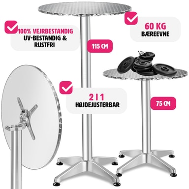 Tämä tyylikäs alumiininen bistrobaaripöytä tectakelta sopii monenlaiseen käyttöön. Olipa kyseessä sitten kotipuutarhajuhla, yritystapahtuma, samppanjavastaanotto tai toimistosi kahvila.Tutustu ominaisuuksiin