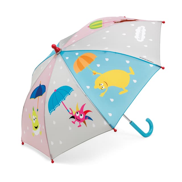 Ikioma Babblarna-sateenvarjo sadepäivien varalta. Sateenvarjossa on Babba, Bibbi, Bobbo, Dadda, Diddi ja Doddo omien sateenvarjojensa kanssa. Hauska Babblarna-aiheinen sateenvarjo piristää mukavasti sadepäiviä. Muovi ei sisällä ftalaattia eikä PVC:tä.