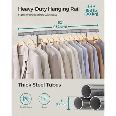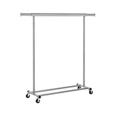 Pyörillä varustettu vaateteline ulosvedettävällä ripustuskiskolla - HopeaTutustu ominaisuuksiin