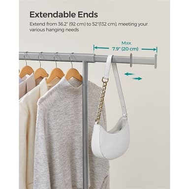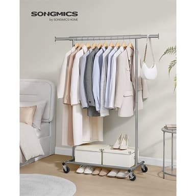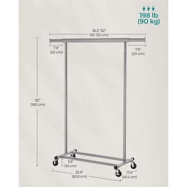 Pyörillä varustettu vaateteline ulosvedettävällä ripustuskiskolla - Hopea