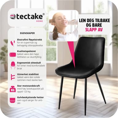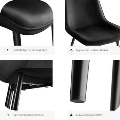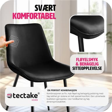 Tyylikkäät sametinäköiset ruokailutuolit Tectakelta tarjoavat vaikuttavan muotoilun, joka sopii mihin tahansa kotiin. Nämä tuolit on ergonomisesti muotoiltu mukavilla istuintyynyillä, jotka tekevät istumisesta erittäin miellyttävää. Niiden ajaton muotoilu varmistaa, että ne sopivat hyvin muihin sisustustyyleihin. Lisäksi tuoleissa on lattiaa suojaavat muoviset korkit, jotka ovat hellävaraisia lattiallesi. Nämä ruokailutuolit ovat erittäin vakaita ja kestäviä, mikä tekee niistä täydellisiä jokapäiväiseen käyttöön. Hanki upeat samettituolit Tectakelta keittiöösi tai olohuoneeseesi jo tänään.