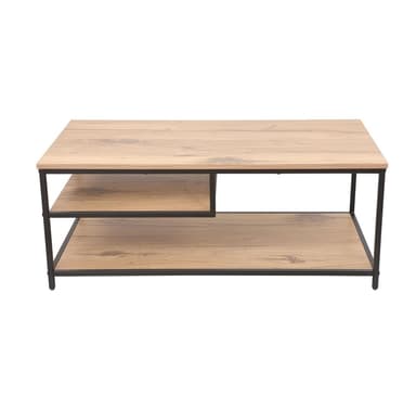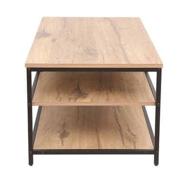 Sohvapöytä DIMITRA 100x50xH40cm, rustiikki/musta.Materiaali: melamiinilevy.Väri: vaalea rustiikki puu/musta.Pöydän runko on valmistettu metallista ja viimeistelty mustalla jauhemaalauksella.Tutustu ominaisuuksiin