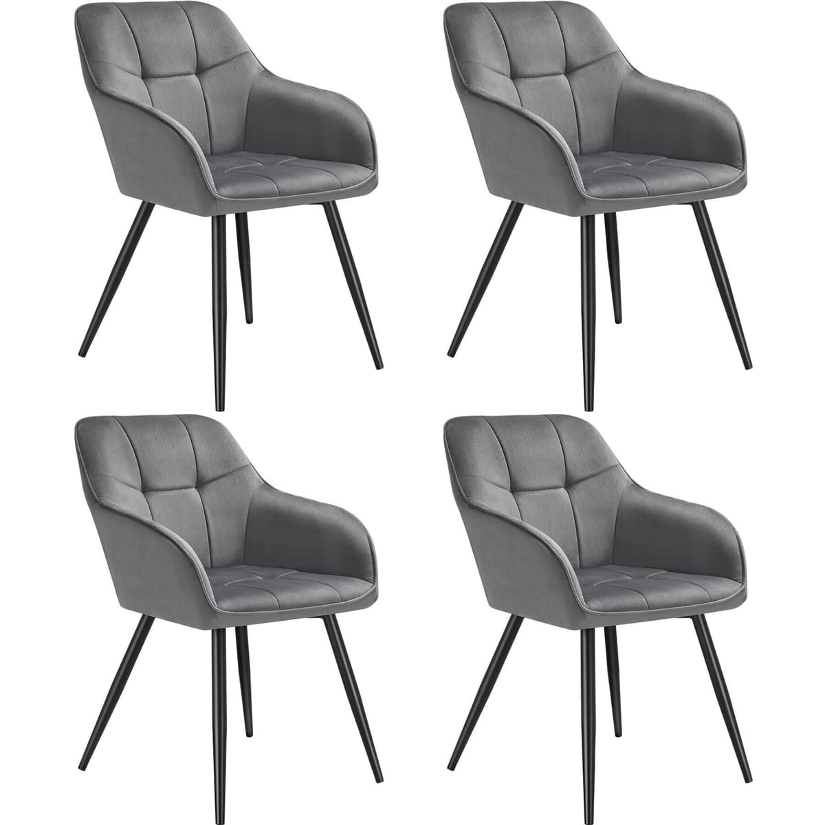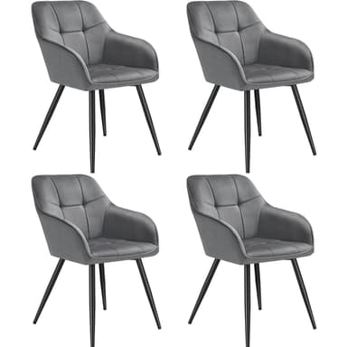 Myös hoikat, levenevät teräsjalat lisäävät viehättävää ulkonäköä, mikä tekee verhoillusta tuolista tyylikkään kohokohdan jokaiseen huoneeseen. Lisäksi ne tarjoavat valtavan vakauden ja kantavuuden ja ovat suojapinnoitteensa ansiosta erittäin kestäviä. Liukumattomat muoviset jalkasuojat estävät myös lattian naarmuuntumisen ja takaavat erinomaisen vakauden.
