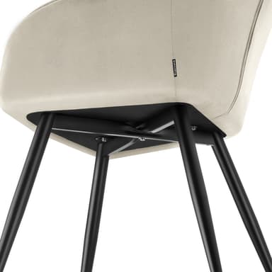 Ruokapöydän tuolin sirot teräsjalat ovat paitsi esteettisesti miellyttäviä, myös erittäin kestäviä ja pitkäikäisiä. Tämä tekee huonekalusta erittäin vakaan ja se kestää suurta kuormitusta. Lattiaa säästävät ja liukumattomat suojat takaavat myös ehdottoman vakauden kaikilla alustoilla.