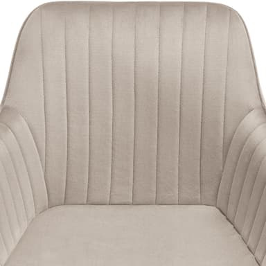Ylellinen samettiverhoilu antaa tuolille ylellisen ihotuntuman, kun taas ergonominen muotoilu lupaa ensiluokkaisen istumiskokemuksen myös pitkien illallisten aikana. Jatkuva käsinoja ja selkänoja, jotka ympäröivät tilavaa istuinpintaa, sekä mukava pehmuste tarjoavat sinulle optimaalisen tuen terveelliseen kehonasentoon.