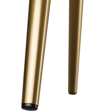 Ohuet, kromatut teräsjalat hurmaavat kiiltävän kultaisella ilmeellään ja lisäävät samalla valtavaa vakautta ja kantavuutta. Liukumattomat, lattiaa suojaavat muoviset jalkakorkit estävät lisäksi naarmuuntumisen ja takaavat erinomaisen vakauden.