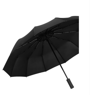 • Tuulenpitävä ja UV-suojattu taitettava sateenvarjo yrityksille Musta