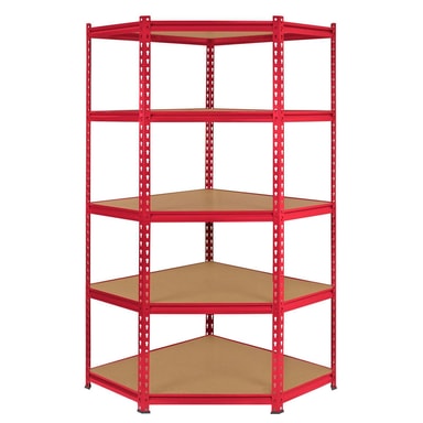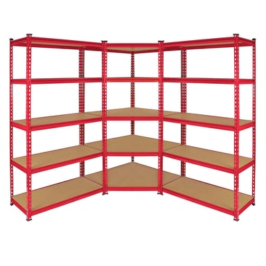 Jokainen hyllykkö on valmistettu pulverimaalatusta teräksestä tyylikkäällä, kiiltävän punaisella viimeistelyllä, ja se on yhtä kestävä kuin tyylikäs. Pulttiton, avaimenreikäinen muotoilu takaa nopean ja vaivattoman kokoonpanon – tarvitset vain mukana tulevan kumivasaran. Jokaisessa hyllykössä on viisi kiinteää MDF-hyllyä, joissa on säädettävä korkeus, joten voit konfiguroida säilytyksesi juuri haluamallasi tavalla. Kulmayksikkö kestää jopa 265 kg hyllyä kohden, kun taas jokainen vakiomallinen Z-Rax-hyllykkö voi kantaa jopa 360 kg hyllyä kohden (tasaisesti jakautuneella painolla), joten tämä paketti sopii täydellisesti työkaluille, laatikoille, osille, varastoille tai tilaa vieville taloustavaroille.