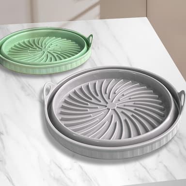 Tilaa säästävä ja monipuolinen: Joustava silikonimateriaali mahdollistaa helpon taittamisen ja säilytyksen, joten se on käytännöllinen lisä mihin tahansa keittiöön. Käytä sitä Air Fryer -vuokana, leivinpaperina tai jopa pannunalustana. Sen monipuolisuus tekee siitä välttämättömän työkalun erilaisiin ruoanlaitto- ja leivontatarpeisiin.