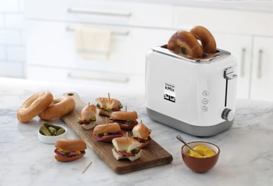 Tyylikkäässä Kenwood Kmix -leivänpaahtimessa on valaistut painikkeet ja säädettävä paahtoaste.Tutustu ominaisuuksiin