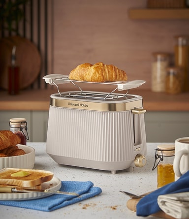 Russell Hobbs Brontë-leivänpaahtimessa on käytännöllisiä ominaisuuksia, kuten nosto- ja katselutoiminto, korkealle nostava vipu sekä pakastus-, uudelleenlämmitys- ja peruutusasetukset. Mukana tulevat myös lämmitysritilä ja irrotettava murualusta.Tutustu ominaisuuksiin