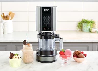 Valmista kylmiä jälkiruokia milloin tahansa Ninja-jäätelökoneella. 7 esiasetettua ohjelmaa mahdollistavat jopa 1,4 litran jäätelömäärän valmistamisen. Mukana toimitetaan kaksi astianpesukoneessa pestävä astiaa ja reseptikirja.Tutustu ominaisuuksiin