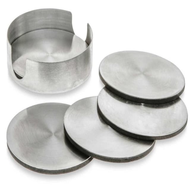 6kpl/sarja MD-GRD001 ruostumattomasta teräksestä valmistettu pöytäalusta Pyöreä lämmöneristysmuki Lämmönkestävä olutteekuppi Käsit elty manuaalisella kiillotustekniikalla, lasinaluksessa on kirkkaampi pinta ja helppo käyttää ja siisti järjestely.