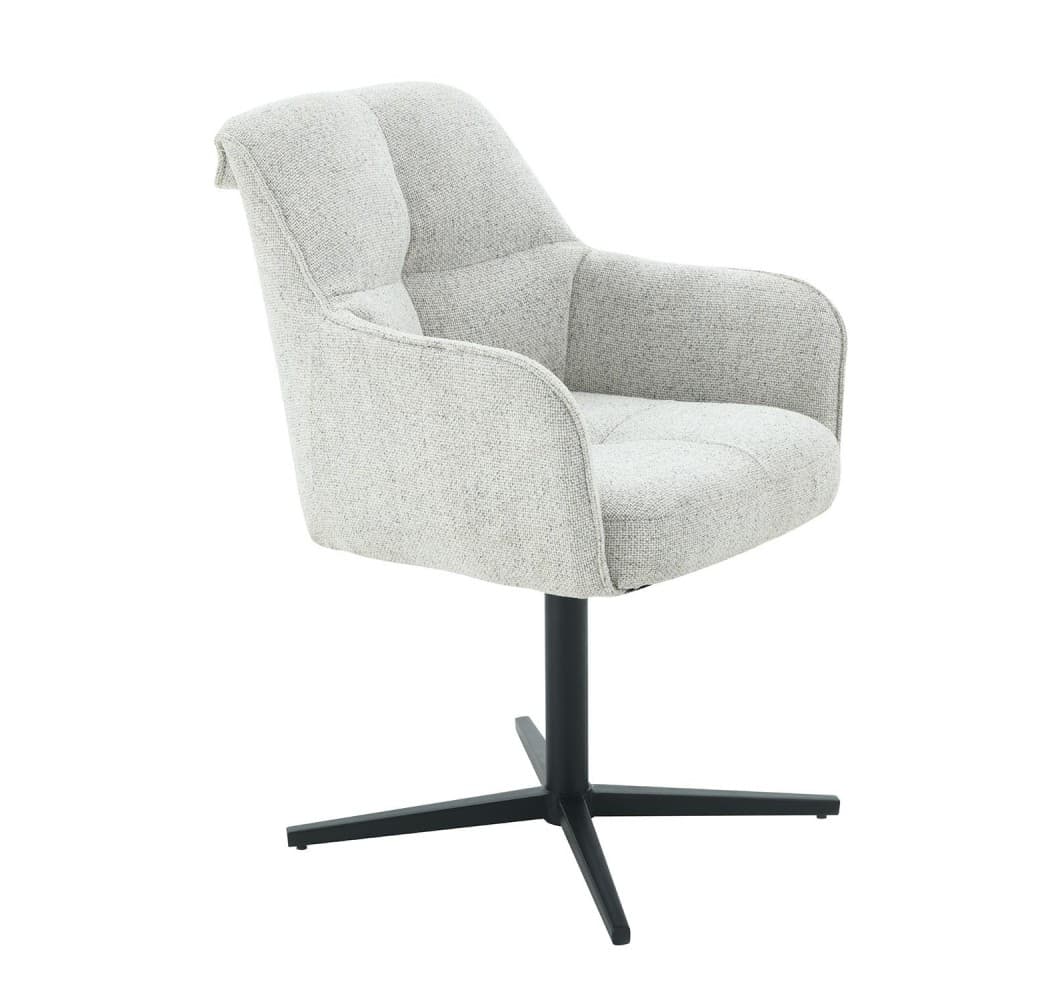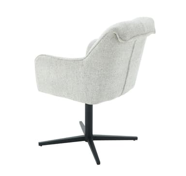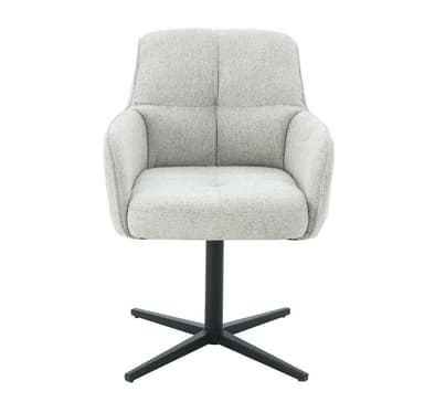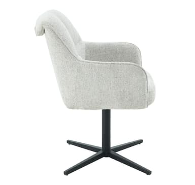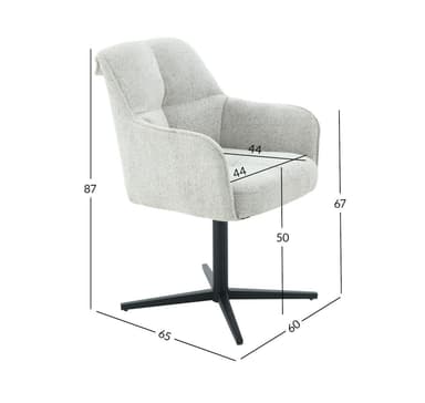 BELDOR-tuoli, pyörivä, beige. Tuolin istuin ja käsinojat on verhoiltu ja päällystetty pehmeällä polyesterikankaalla. Tuolin nelihaarainen metallijalka on viimeistelty mustalla pulverimaalilla. Istuin pyörii 360°. Tuolin kokonaismitat ovat 60x65xK87cm. Istuimen leveys 44cm, istuimen syvyys 44cm, istuimen korkeus 50cm. Käsinojien korkeus maasta 67cm. Painoraja 120kg.