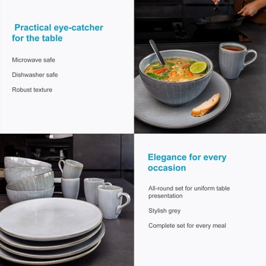 Pöytäpalvelu 4 osassa lautasilla, kulhoilla ja kupeilla. Tyylikäs ja moderni muotoilu. Astianpesukoneen ja mikroaaltouunin kestävä.Tutustu ominaisuuksiin