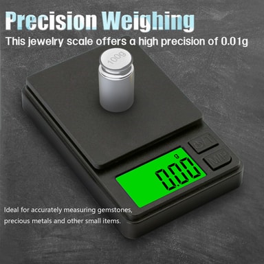 Tarkkuuspunnitus: Tämä koruvaaka tarjoaa 0,01 g:n tarkkuuden, joten se sopii erinomaisesti jalokivien, arvometallien ja muiden pienten esineiden ja määrien tarkkaan punnitsemiseen.