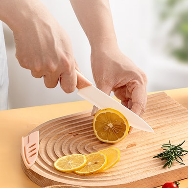 Terävä keraaminen terä: Koe vaivaton leikkaus tällä edistyneellä keraamisella terällä, joka on suunniteltu poikkeuksellisen teräväksi ja kestäväksi. Sen terävät terät liukuvat hedelmien ja vihannesten läpi tarkasti ja tarjoavat upean esillepanon.