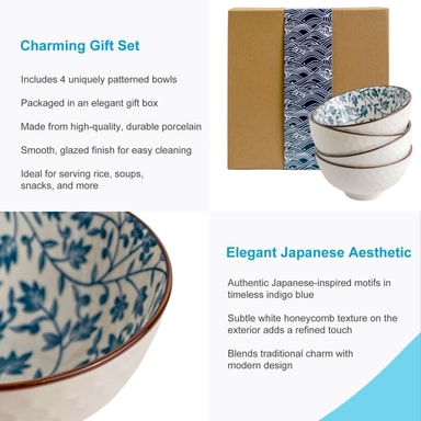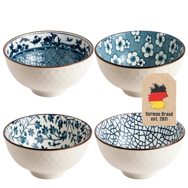 Intirilife posliinikulhosetti japanilaisella sinisellä ja valkoisella kuviolla, 4 kpl