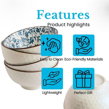 Korkealaatuiset kulhot ovat helppo puhdistaa ja sopivat astianpesukoneeseen ja mikroaaltouuniin. Posliiniset astiat toimitetaan lahjapakkauksessa ja ovat siksi myös ihanteellinen lahja japanilaisen keittiön ystäville.