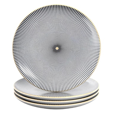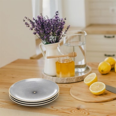 Lautaset ovat pyöreitä ja melko yksinkertaisia, jotta pintaa voidaan käyttää optimaalisesti. Samalla ne ovat myös erittäin tyylikkäitä ja sopivat mihin tahansa pöytäkoristeeseen ja sisustukseen.Ne ovat konepesun kestäviä ja kuivuvat erittäin nopeasti. Tämä tekee puhdistamisesta vaivatonta. Lautaset ovat pinottavia, ja vankan ja helppohoitoisen materiaalin ansiosta ne ovat erittäin tilaa säästäviä. Posliinimateriaali on lämpöä ja kylmää kestävää Laatikon sisältö: 4 lautasta
