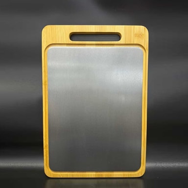 Kaksiosainen materiaalirakenne: Innovatiivinen muotoilu yhdistää bambun vahvuuden ja kauneuden ruostumattoman teräksen toiminnallisuuteen. Bambukehys tarjoaa tukevan ja esteettisesti miellyttävän reunan, kun taas ruostumattomasta teräksestä valmistettu sisäosa tarjoaa sileän, huokoisen leikkuupinnan. Tämä kaksiosainen materiaalirakenne tarjoaa molempien maailmojen parhaat puolet: bambun luonnollisen lämmön ja ruostumattoman teräksen hygieeniset ominaisuudet. Integroitu mehukouru kerää tehokkaasti nesteitä, estää roiskeita ja pitää työtasosi puhtaana. Täydellinen paistien leikkaamiseen, hedelmien viipaloimiseen tai vihannesten pilkkomiseen.
