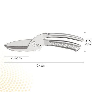 Multifunktionell design: Dessa fisksaxar i hel stål är designade för en mängd olika köksuppgifter. Den integrerade multifunktionella designen gör att du enkelt kan klippa kycklingben, fjällfisk och till och med öppna flaskor. Det ergonomiska fiskmönstrade handtaget ger ett bekvämt och säkert grepp, vilket förbättrar kontrollen och precisionen under användning. Detta mångsidiga verktyg förenklar matlagningen och minskar behovet av flera köksredskap, vilket gör det till ett viktigt tillskott i varje hemmakocks arsenal.