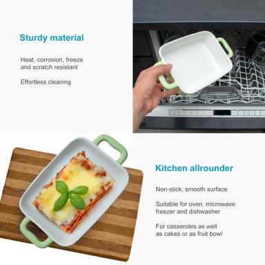Monipuolisella uunivuokalla valmistat pastaa, lasagnea, vihanneksia, liharuokia, pannuja ja kakkuja, ja se sopii myös hedelmä- tai salaattikulhoksi. Siinä on sileä pinta, joten sisältö ei tartu kiinni. Suorakulmaisessa muodossa on kaksi käytännöllistä kahvaa, jotka mahdollistavat helpon irrotuksen. Minimalistisen muotoilunsa ansiosta se sopii täydellisesti minkä tahansa keittiön tai ruokailutilan sisustukseen.. Olipa kyseessä kotona, ravintolassa, hotellissa, catering-tilassa tai juhlissa, kevyt ja monikäyttöinen uunipannu näyttää hyvältä kaikkialla. Materiaali on elintarviketurvallinen, lämmön- ja korroosionkestävä, pakkasenkestävä, kestävä ja naarmuuntumaton.Vaivaton puhdistuksen ansiosta se on uudelleenkäytettävä ja siksi erittäin ympäristöystävällinen.