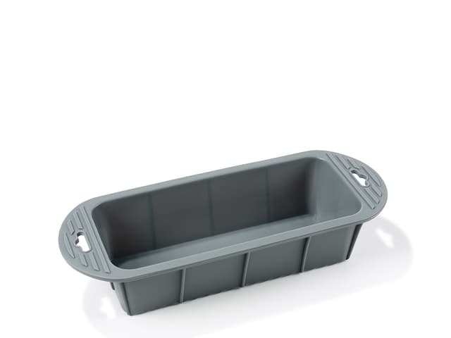 Bread tin 24 cm, 1.3 litres.Made of grey silicone.Oven, microwave, freezer and dishwasher safe.Withstands up to 220 degrees and down to -20 degrees.Tutustu ominaisuuksiin