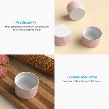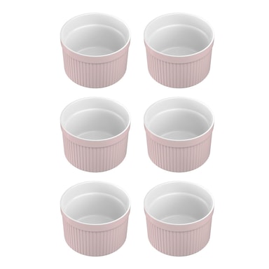 6-osainen souffle-muottisarja on valmistettu kestävästä ja lasitetusta posliinista ja sopii sekä harraste- että ammattileipureille.