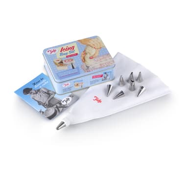 Mukana pursotuspussi, liitin, kuusi ruostumattomasta teräksestä valmistettua suutinta ja englanninkielinen ""Kuinka koristella kakkua"" -esite.Tutustu ominaisuuksiin