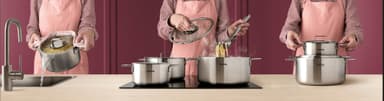 Epoq by Woll kattilasarja (24 cm, 20 cm, 16 cm) tarjoaa tasaisen lämmönjakautumisen tyylikkäässä muotoilussa. Yhteensopiva kaikkien liesitasojen, myös induktion, kanssa. Kestää uunikäyttöä ja on konepestävä helppoon ruoanlaittoon ja puhdistukseen.Tutustu ominaisuuksiin