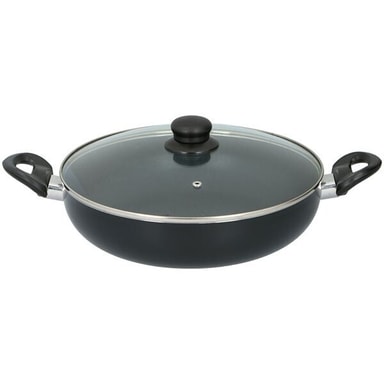 Monipuolinen pannu lasikannella ja tarttumattomalla pinnoitteella