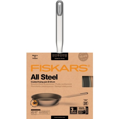 Fiskars All Steel -paistinpannussa on tarttumaton Ceratec-pinnoite, tasaisesti lämpöä jakava kolmikerroksinen pohja ja tyylikäs harjattu pinta, jotka takaavat erinomaisen ruoanlaittokokemuksen. Pannussa on 25 vuoden takuu.Tutustu ominaisuuksiin