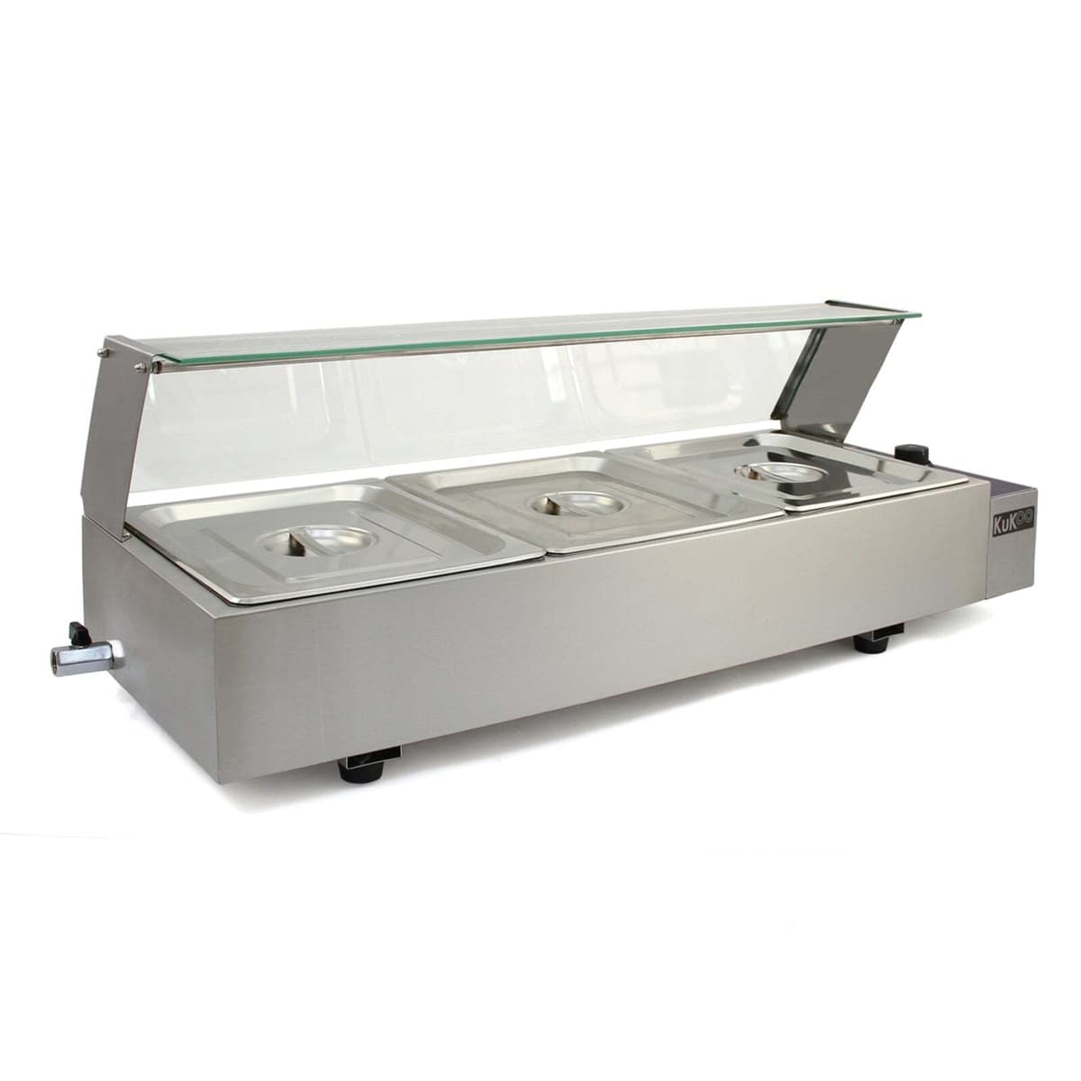 Märkäkaivobain maries tarvitsee vettä luodakseen höyryä, joka pitää ruokasi kauniina ja kosteana. Veden lämpötila pysyy tasaisena, minkä vuoksi tämän tyyppinen vesisäiliö on välttämätön kaikissa catering-keittiöissä.