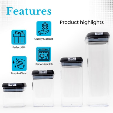Pidä ruokasi tuoreena ja kuivana, olivatpa ne sitten leivonnaisia, pastaa, muroja, pähkinöitä, makeisia, leivonnaisia, kuten jauhoja tai jopa nesteitä. Käytännölliset laatikot voidaan säilyttää ruokakomerossa, keittiössä ja myös hotellin välipalabaarissa.Ne näyttävät hyvältä.