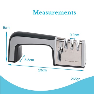 4-in-1 veitsimylly, joka on valmistettu ruostumattomasta teräksestä saksille ja keittiöveitsille - sopii teräkselle ja keramiikalle karkea ja hieno hionta liukumattomalla pohjalla