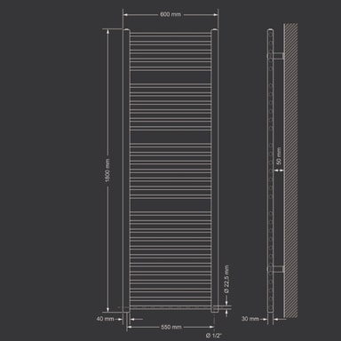 Toimituksen: pyyhe Kuumennetaan tanko 900W Paineentasausventtiili 1/2 tuuman Sokea pistokkeet 1/2 tuuman Kokoamisohjeet Seinäasennussarja: - 4 x seinäkiinnitykseen - 4 x kiinnitystarvikkeet - 4 x kiinnitysruuvi - 4 x pesurit Tekniset