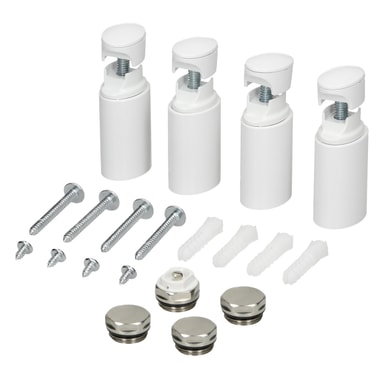 Toimituksen: 1 x Pyyhe 1 x yhteysasetusryhmälle seinäliittimessä White Paineentasausventtiili 1/2 tuuman Sokea pistokkeet 1/2 tuuman Kokoamisohjeet Seinäasennussarja: - 4 x seinäkiinnitykseen - 4 x kiinnitystarvikkeet - 4 x kiinnitysruuvi