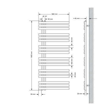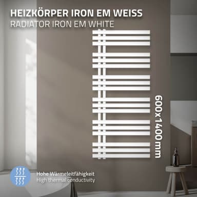 Rauta EM-malli Pyyhejäähdytin Lämmitetty pyyhe 600 x 1400 mm valkoinenTutustu ominaisuuksiin