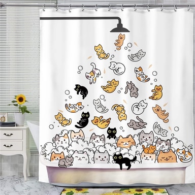 Sarjakuvaeläinsuihkuverho 180 x 180 cm Vedenpitävä Polyesteri Kylpyhuoneen Jakaja 12 Koukulla - koirat【Ainutlaatuinen muotoilu】 Viehättävä sarjakuvakylpyammeen design, joka on painettu edistyneillä tekniikoilla elävien ja selkeiden kuvien aikaansaamiTutustu ominaisuuksiin