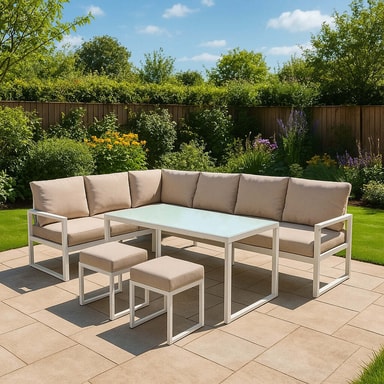 Alumiininen kulmasohvasarja - valkoinenTutustu ominaisuuksiin