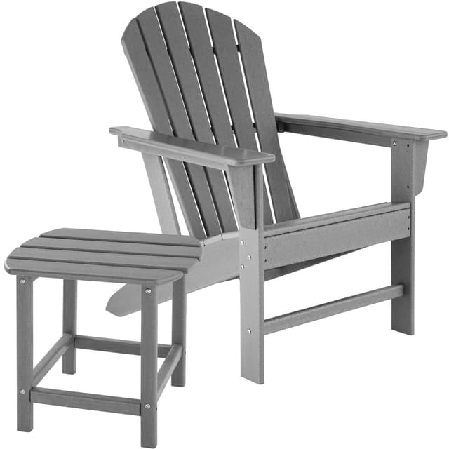 Nojaa taaksepäin, hengitä syvään ja yksinkertaisesti nauti, on tämän tectaken huonekalusarjan, joka koostuu puutarhatuolista ja sivupöydästä, motto. Katseenvangitsija on tietenkin tukeva tuoli Adirondack-ilmeessä, joka edustaa sekä mukavaa että terveellistä istumista. Juomat, kännykät, kirjat ja muut tarvikkeet voi sijoittaa kätevästi tasaisille, leveille käsinojille tai vakaalle sivupöydälle. Sarjapöydän ansiosta voit myös nauttia rennosta ulkoruokailusta lämpimänä kesäiltana. Kaksiosainen setti on valmistettu kokonaan helppohoitoisesta polyeteenistä, joten se ei ole herkkä muuttuville sääolosuhteille - täydellinen materiaali pitkäaikaiseen ulkokäyttöön. Hanki tämä puun näköinen puutarhatuoli ja sivupöytä Tectakelta kotiisi.