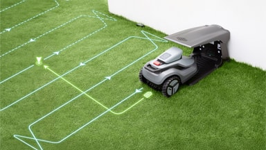Käytön alussa ruohonleikkuri luo automaattisesti yksityiskohtaisen kartan nurmikkoalueesta ja tunnistaa rajat ja asettelun ilman manuaalista ohjausta.
