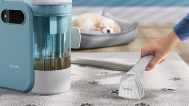 Puhdista mutatahrat, roiskeet ja jäljet matoista Philips 3000 Series -mattopesurilla. Tässä 400 W puhdistuslaitteessa on 1,6 l vesisäiliö ja PowerCyclone Aqua -tekniikka, joka syöttää tuoretta saippuavettä ja pitää likaisen veden erillään. Siinä on 6,6 metrin ulottuvuus ja 3-in-1-suutin pehmeille pinnoille.